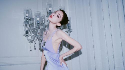 娜扎的紫色连衣裙妆造,梦幻且浪漫,超不错的,nice!